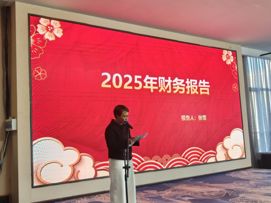 郑重议事,共商发展。 文体活动结束后,全体会员齐聚宴会厅。首先召开的理事会就相关议题进行了深入研讨与决策,为会员大会的顺利举行做好了准备。随后,庄严的会员大会正式开始。会议在循环播放的协会年度回顾视频中启幕。与会会员认真听取并审议通过了《协会2025年度工作报告》、《2025年度财务报告》及《监事报告》。各项报告详实透明,系统展示了协会过去一年在行业服务、自律建设、会员发展等方面取得的扎实成果。会上,秘书处还就2026年度的重点工作计划进行了汇报,明确了新一年的行动方向与目标,凝聚了行业发展共识。
