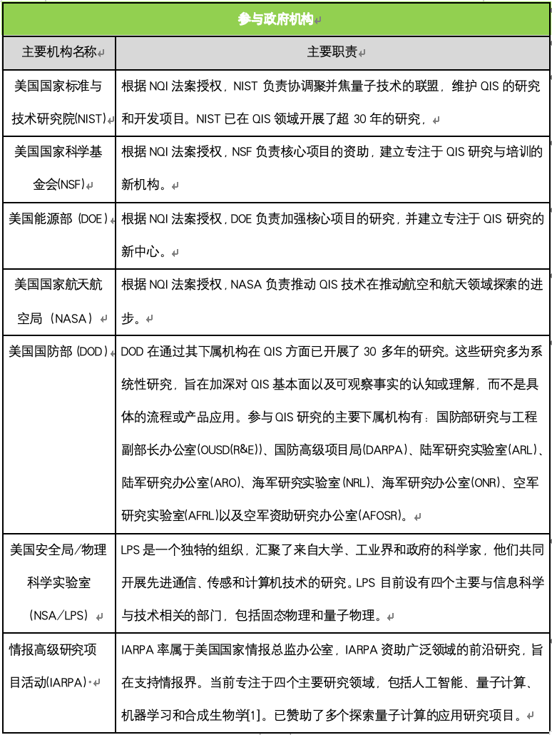 图1:参与国家量子倡议的美国政府机构[2]