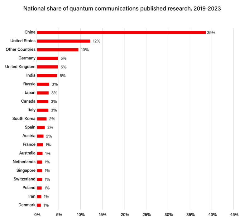 图:世界各国量子通信出版物的占比(2019-2023)[19]