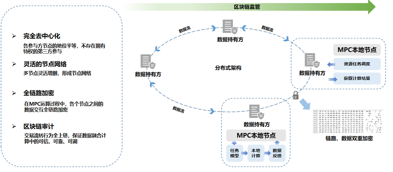 多方安全计算基于秘密共享、混淆电路、同态加密等密码学原语,实现在多个非互信参与方之间进行协同计算,且任何参与方都无法获取其他方的原始数据。
